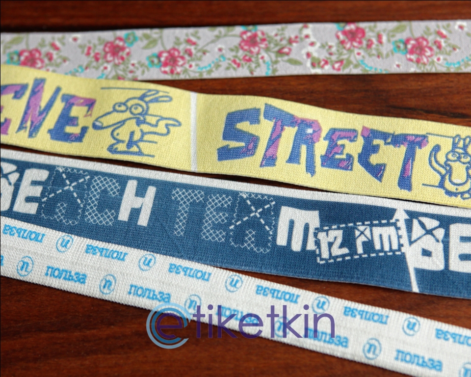 Наша печать без труда переносит многократные стирки, это касается и наших красочных эластичных тесьм.